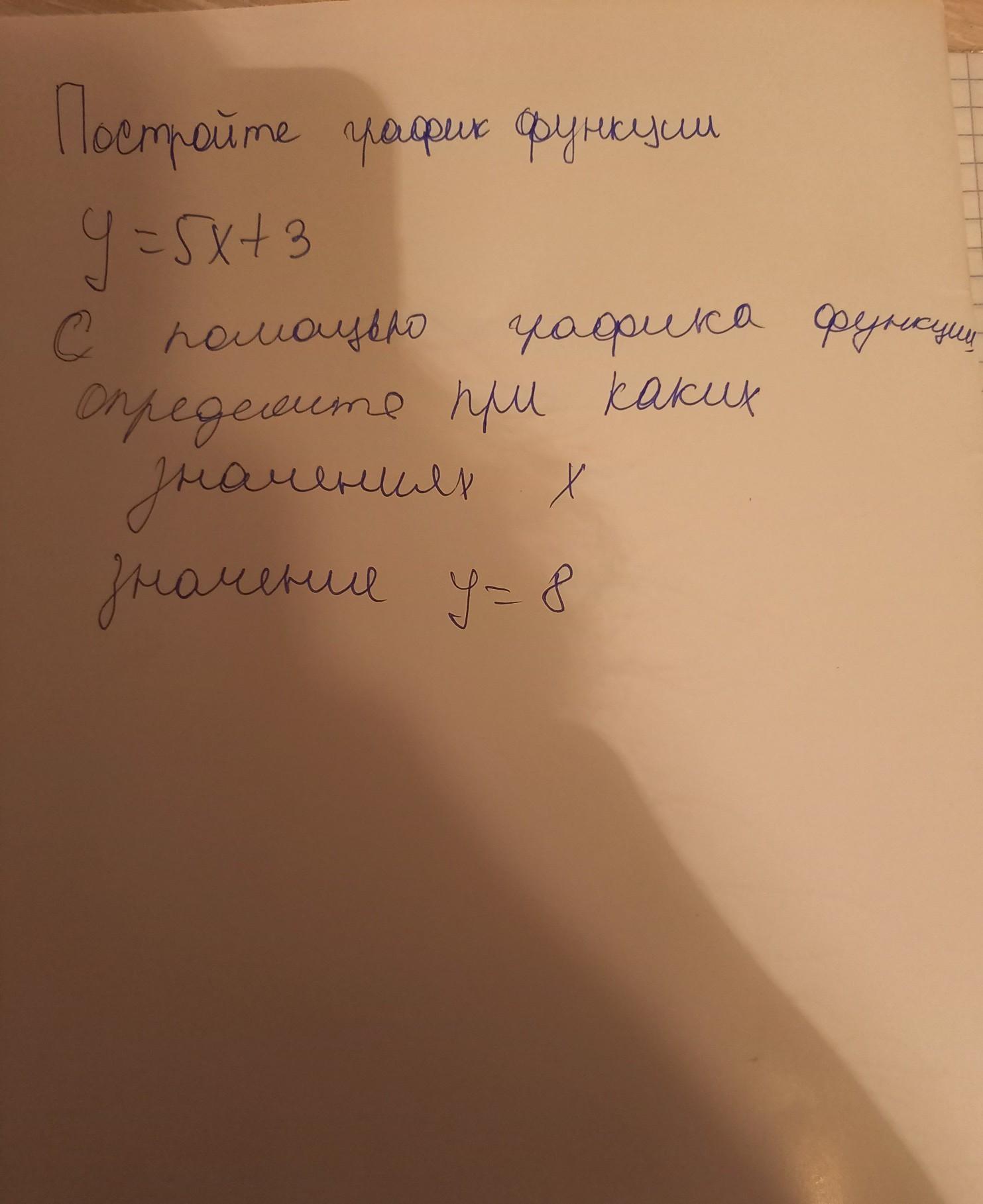 задана линейная функция - для построения ее графика необходимо две точки, при х=2 у=5*2+3=13