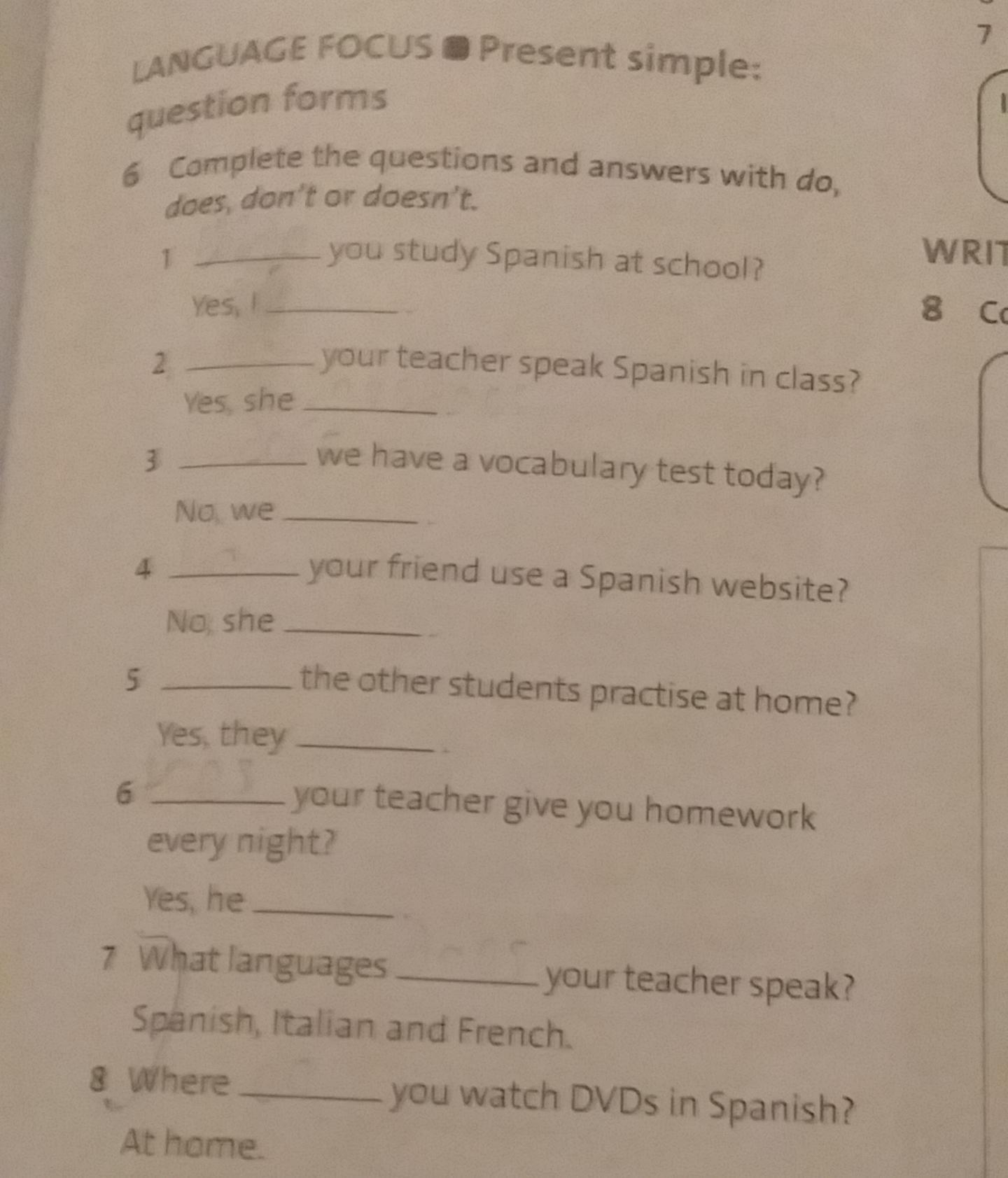 Плиз помогите!!!!! Complete the questions and answers with do,does, don't or doesn't