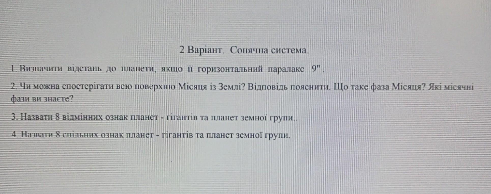 1. Чи можна спостерігати всю поверхню Місяця із Землі? Відповідь пояснити. Що таке фаза Місяця? Які місячні фази ви знаєте?
