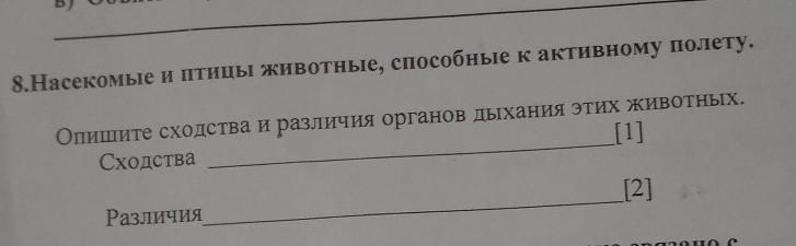 8.Насекомые и птицы животные, способные к активному полету. Опишите сходства и различия органов дыхания этих животных. Сходства [ Различия [