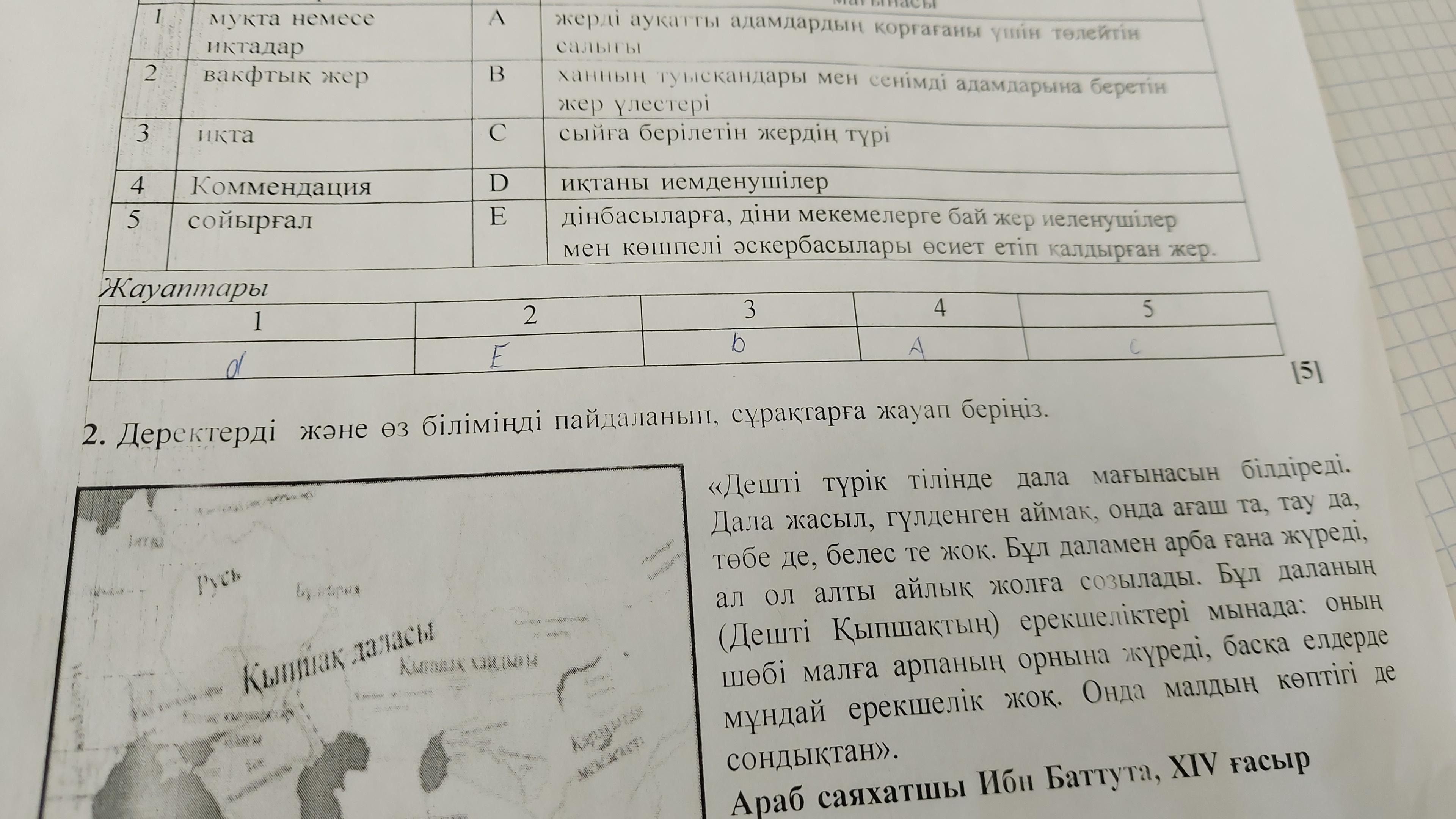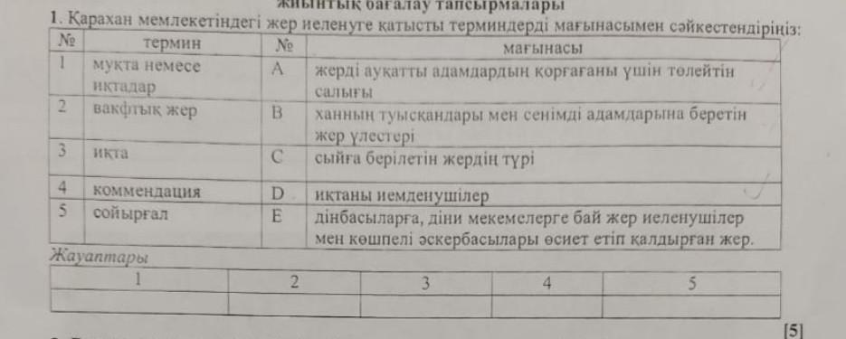 1. Қарахан мемлекетіндегі жер иеленуге қатысты терминдерді мағынасымен сәкестендіріңіз: