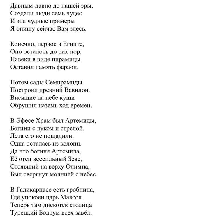 3. Давным-давно до нашей эры, / Создали люди семь чудес.
