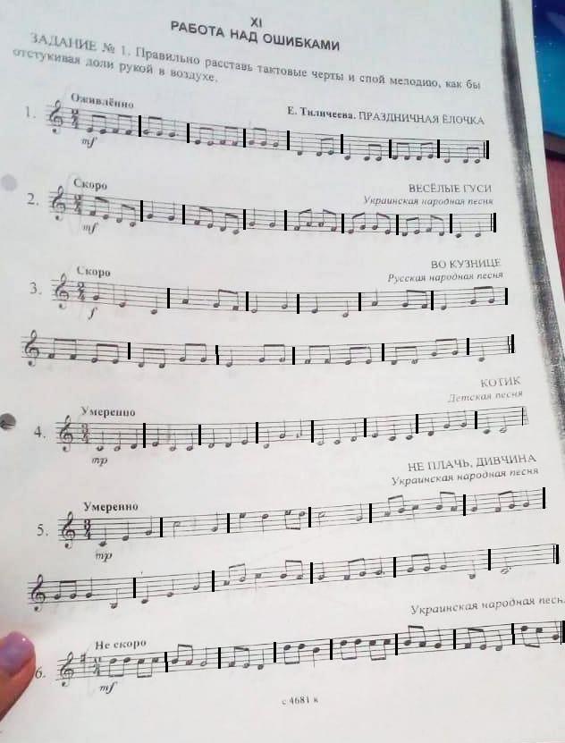 Люди пж помогите ЗАДАНИЕ № 1. Правильно расставь тактовые черты и спой мелодию, как бы отсу отстукивая доли рукой и воздухе