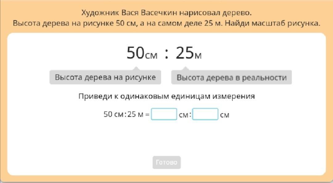 50 см : 25 м = 50 см : 2 500 см = 1 : 50.