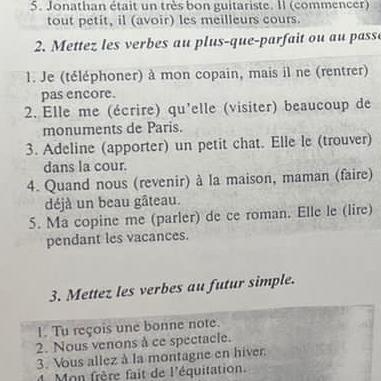 1.j'ai téléphoné à mon copain, mais il n'était pas rentré