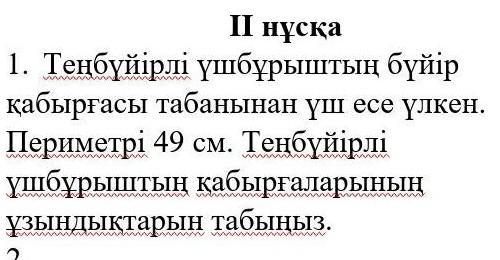 49•3=147 .Жауабы : Теңбүйірлі үшбұрыштың қабырғаларының ұзындығы 147 см.
