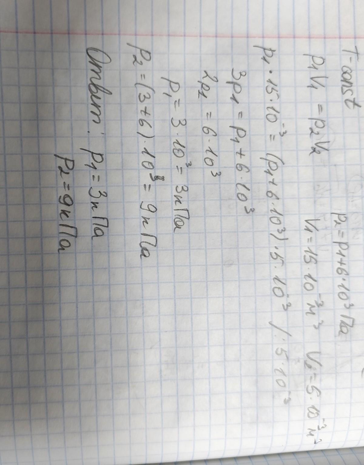 возросло на 6 кПа. Определите первоначальное и конечное давление.