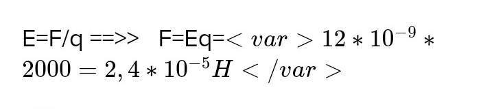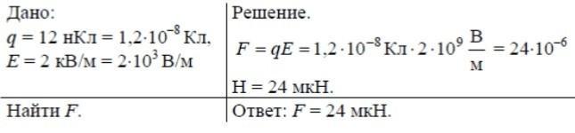 4. Какая сила действует на заряд 12 нКл, помещенны напряженность электрического поля равна 2 кН/м?