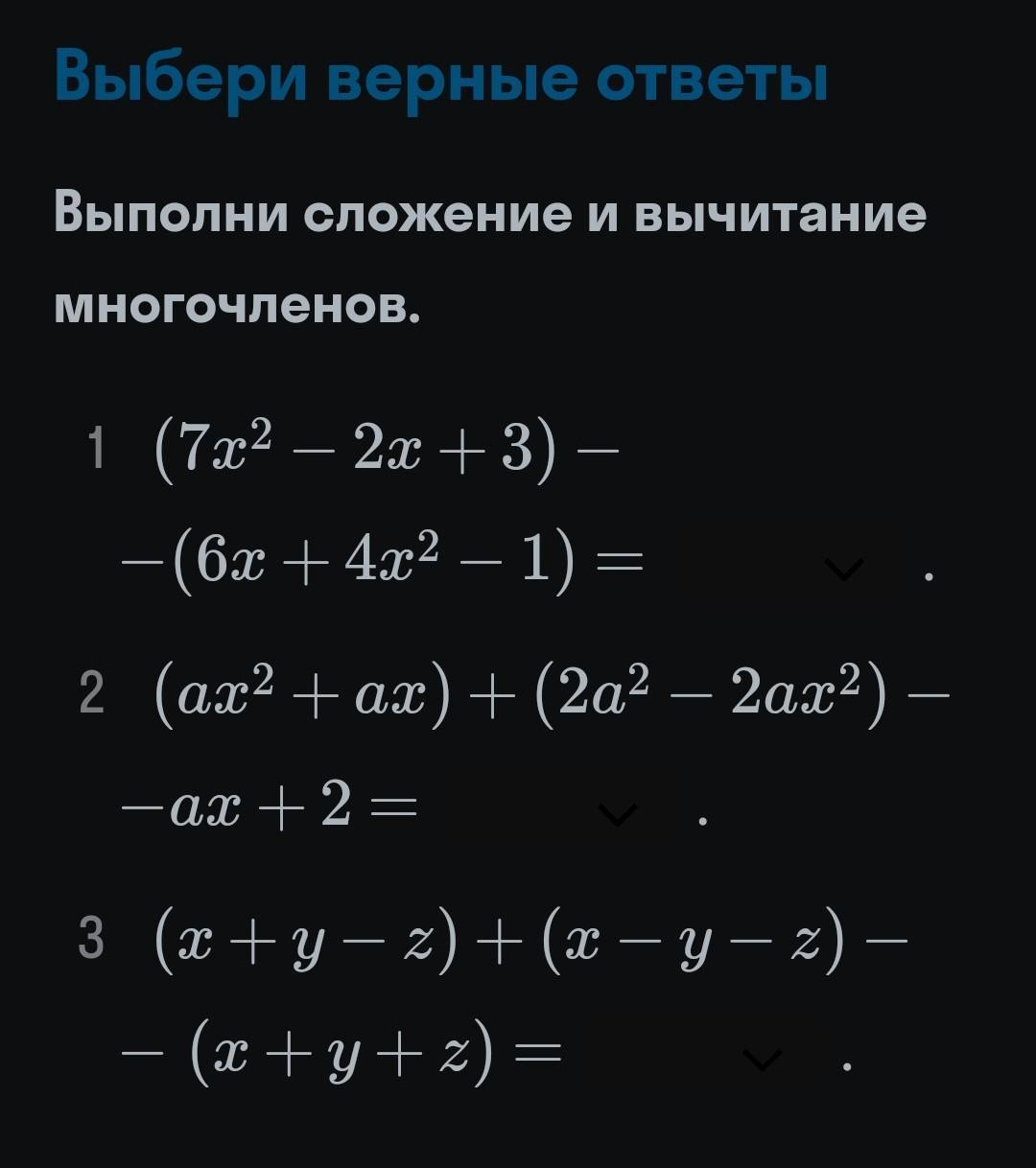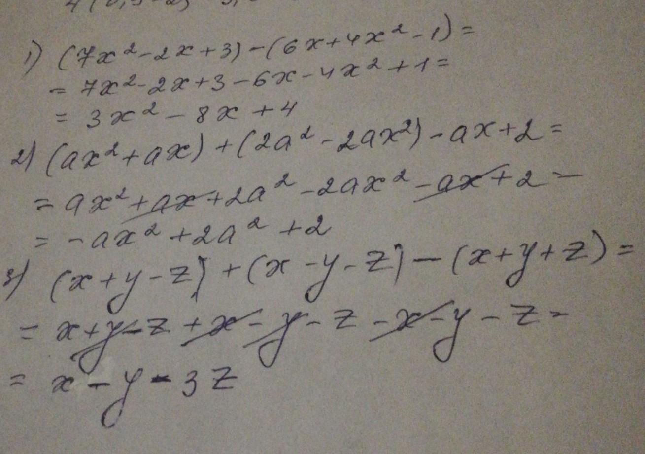 1) (7х² - 2х + 3) - (6х + 4х² - 1) =