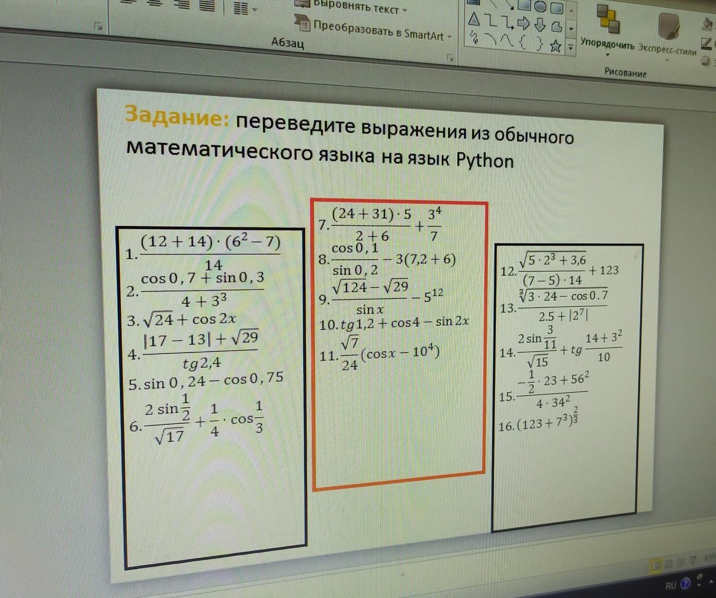 result = (sqrt(7) / 24) * (cos(x) - 10**4)