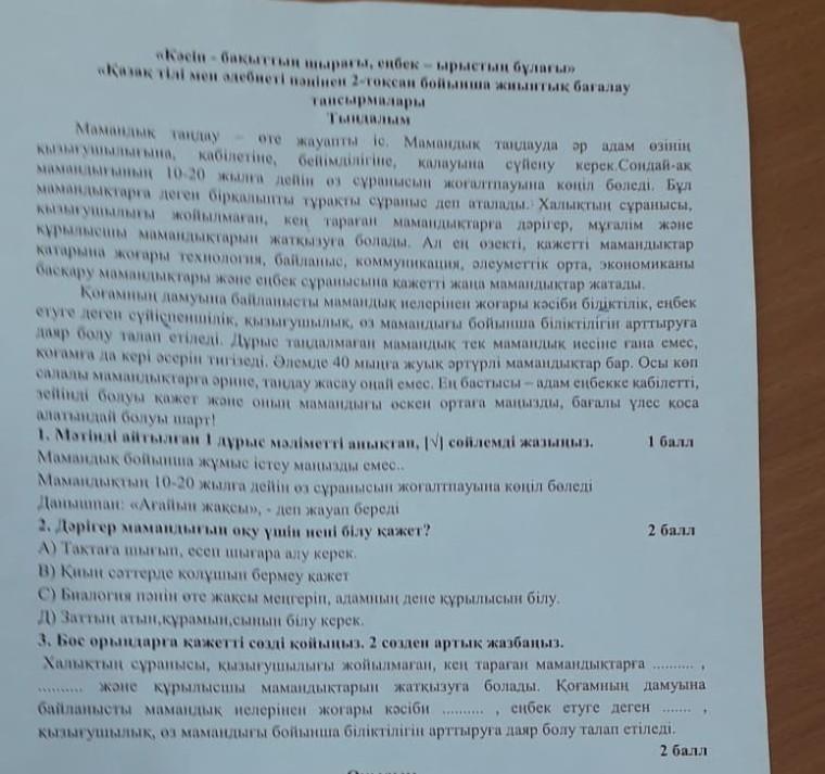 3. ..мамандықтарға дәрігер, мұғалім және..... жоғары кәсіби біліктілігін. .....еңбек етуге деген сүйіспеншілік,....