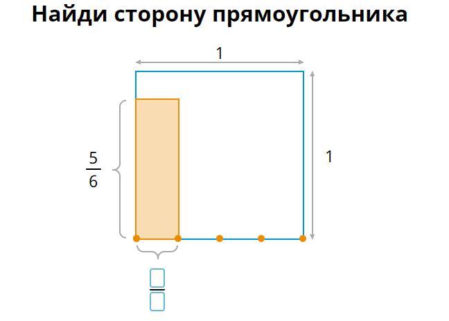 Сторона синего квадрата разделена на 4 части, закрашена 1 часть, значит, сторона прямоугольника равна 1/4.
