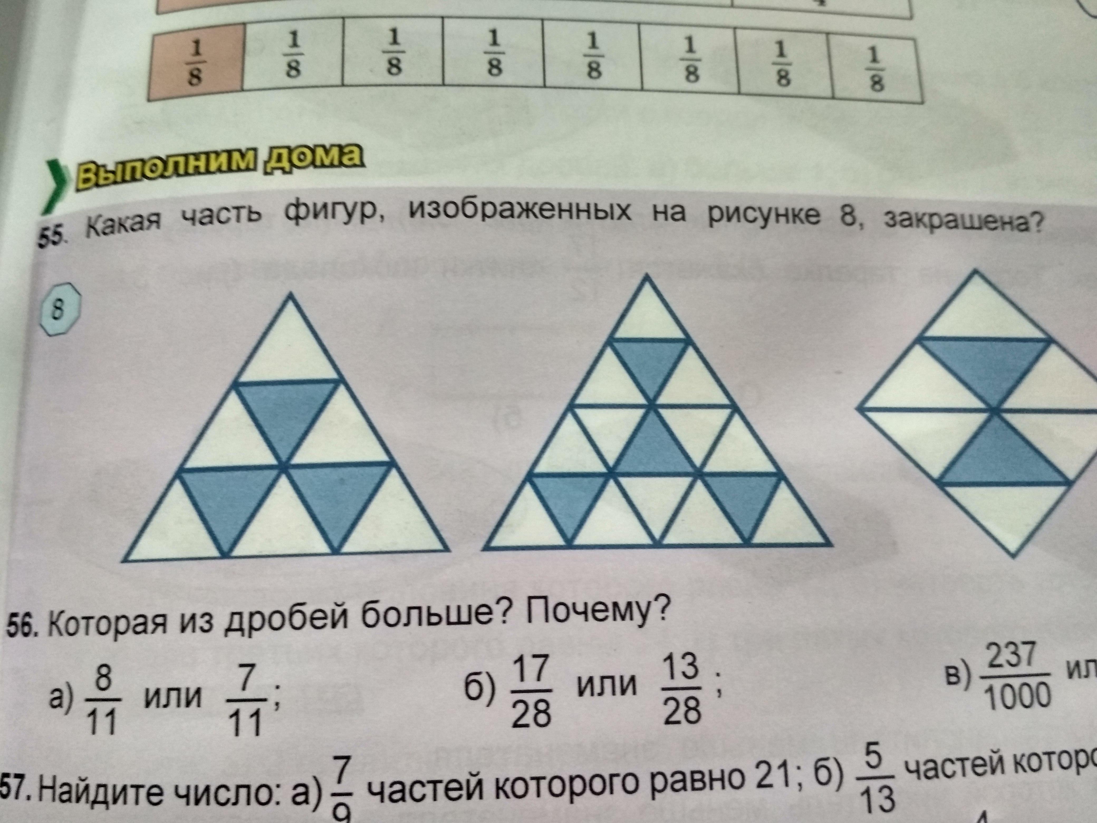 3) закрашены 2 части из 8, значит 2/8 или 1/4
