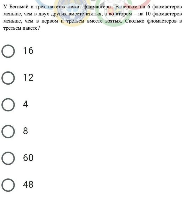Пусть в первом пакете лежат "х₁", во втором – "х₂", а в третьем – "х₃" фломастеров, тогда, по условию: