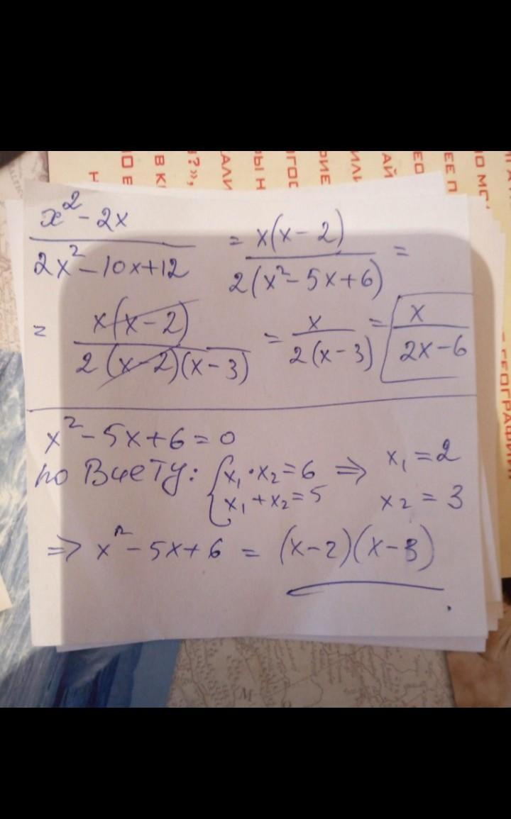 2х²-10х+12=2*(х²-5х+6)=0; х=3; х=2- по Виету нашел; х²-2х=(х*(х-2));