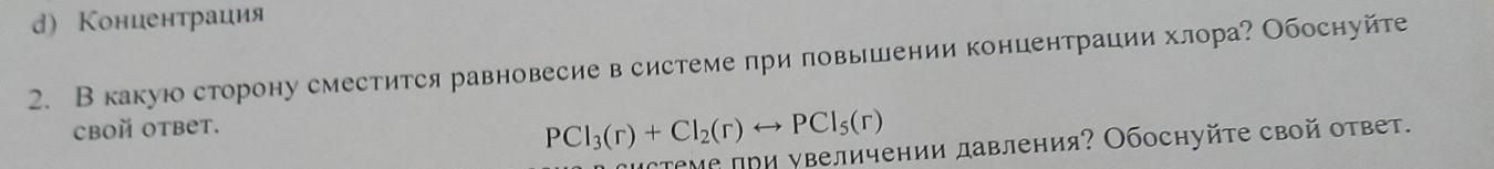 в какую сторону сместится равновесие в системе при повышении концентрации PCL3(г)+CL2(г)↔️ PCL5(г)