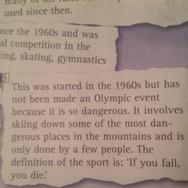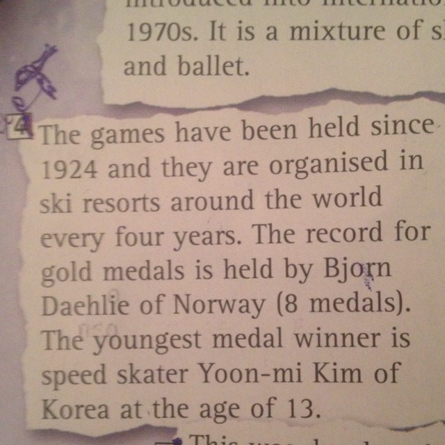 Игры проводятся с 1924, и они организованы в горнолыжных курортов во всем мире раз в четыре года. Запись за золотые медали проводится Бьорн Дэли Норвегии (8 медалей). Самый молодой победитель медаль конькобежец Юн - миль Ким Rorea в возрасте до 13 лет. Это только было сделано с 1960 года и был введен в международном конкурсе на 1970. Он представляет собой смесь из лыжи, коньки, гимнастика и балета. Он начал в 1960-х, но не было сделано олимпийскую событие, потому что это опасно. Она включает в себя катание на лыжах вниз некоторые из самых опасных мест в горах и делается только несколько человек.Befenition спорта является: "Если ты упадешь, ты умрешь».