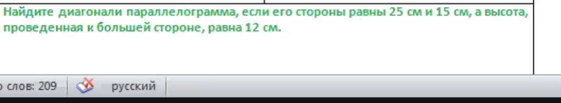 BH = 12 см, AB = 15 см, AD = 25 см.