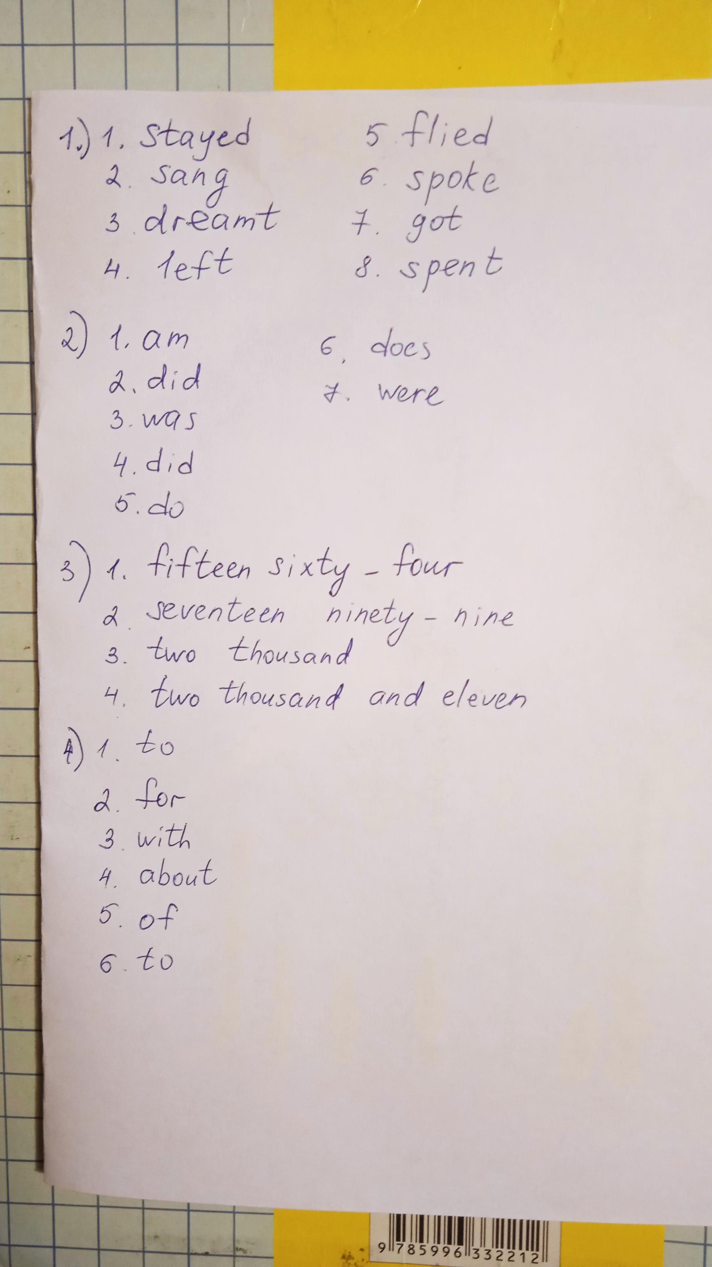 1- am, 2- did, 3- was, 4- did, 5- do, 6- does, 7- were