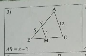 рассмотрим треугольники NBM и ABC - подобные по двум сторонам и углу между ними MN/AC=BN/АВ, ∠BNM=∠BAC (∠KNA=∠BAC как накрест лежащие при параллельных MN║AC и секущей AB, а ∠BNM=∠KNA как вертикальные углы при пересекающихся прямых MK и AB. Следовательно, BN/АВ=4/12