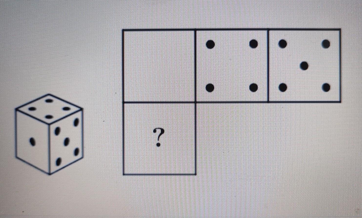 Смотрим, какие стороны совпадают на развороте и определяем, что на неизвестной грани будет одна точка.