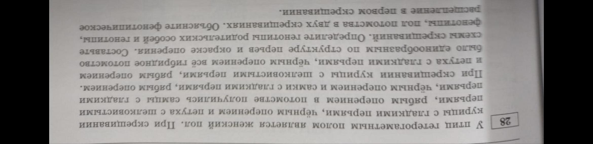 P: ♀aaX^hY (с шелковистыми перьями, рябым оперением) x ♂ AAX^HX^H ( с гладкими перьями, черным оперением)