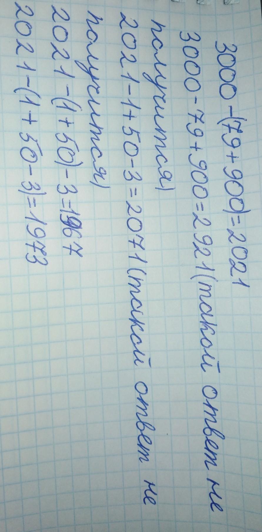 3000 - (79 + 900) = 3000 - 979 = 2021