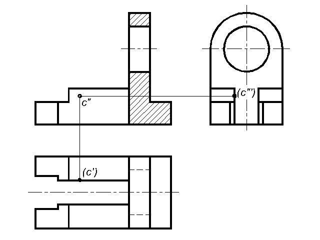 Обозначение точки в скобках говорит о том, что на данном виде точка невидна.
