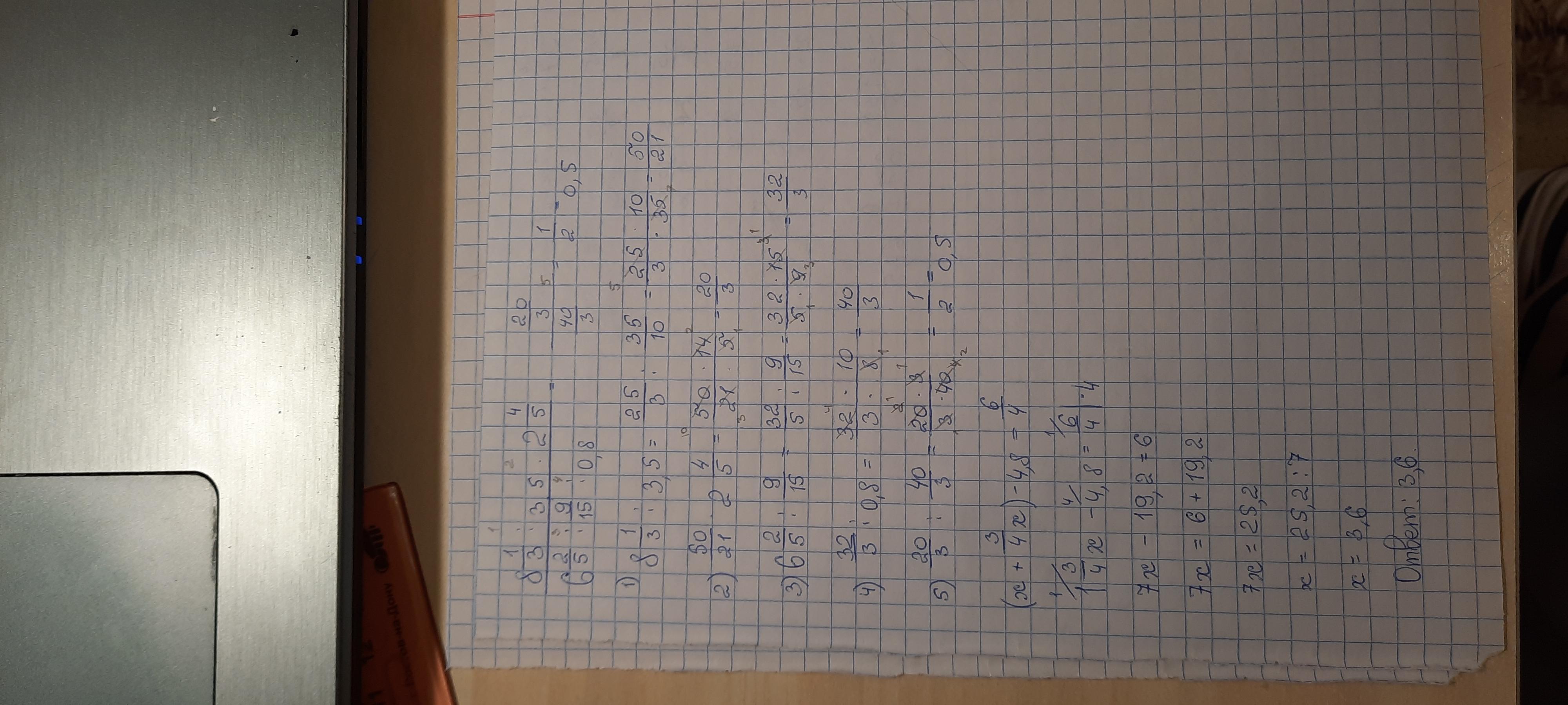 2) 50/21 * 2. 4/5 = 50/21 * 14/5 = 10/3 * 2/1 = 20/3