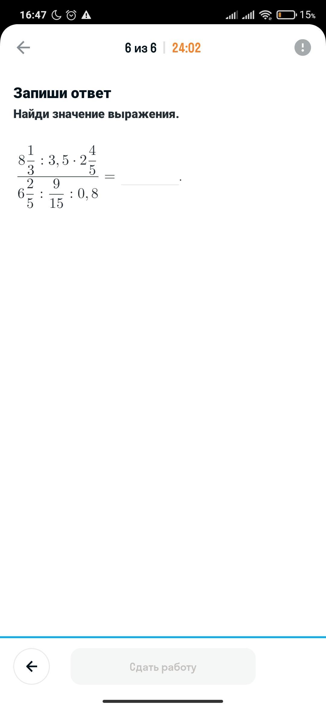 2) 6. 2/5 : 9/15 = 32/5 : 9/15 = 32/5 * 15/9 = 32/1 * 3/9 = 32/1 * 1/3 = 32/3