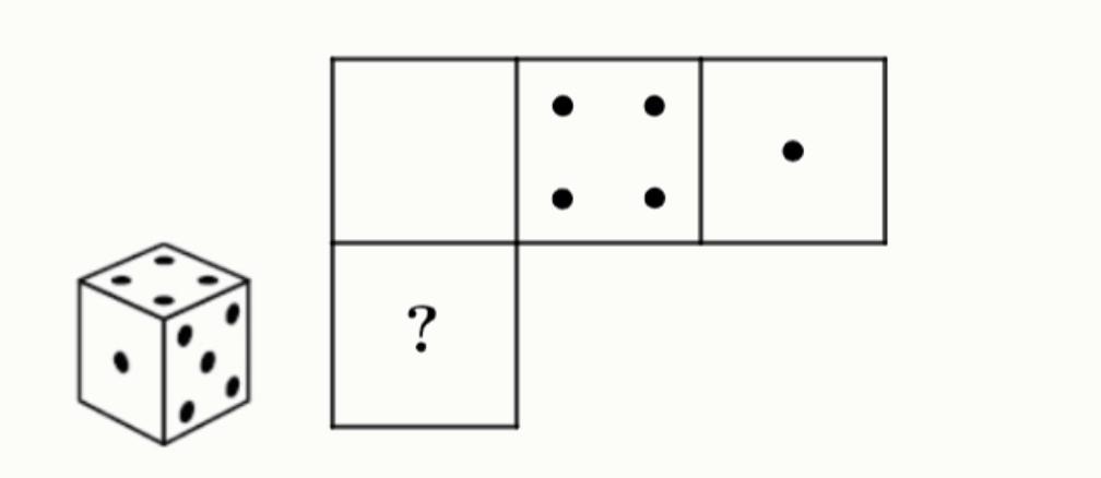 Игральный кубик покатили по столу. На рисунке изображён след кубика. Сколько точек на грани, коснувшейся клетки с вопросительным знаком? Известно, что сумма чисел на противоположных гранях кубика равна 7.