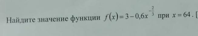 Найдите значение функции f(x) = 3 - 0,6x^(-2/3) при х = 64 помогите пожалуйста ! 30 б