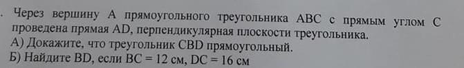 И так как АС ⏊ ВС (по условию, так как ∠С=90°), то ДС⏊ВС, значит ∆СВД – прямоугольный.
