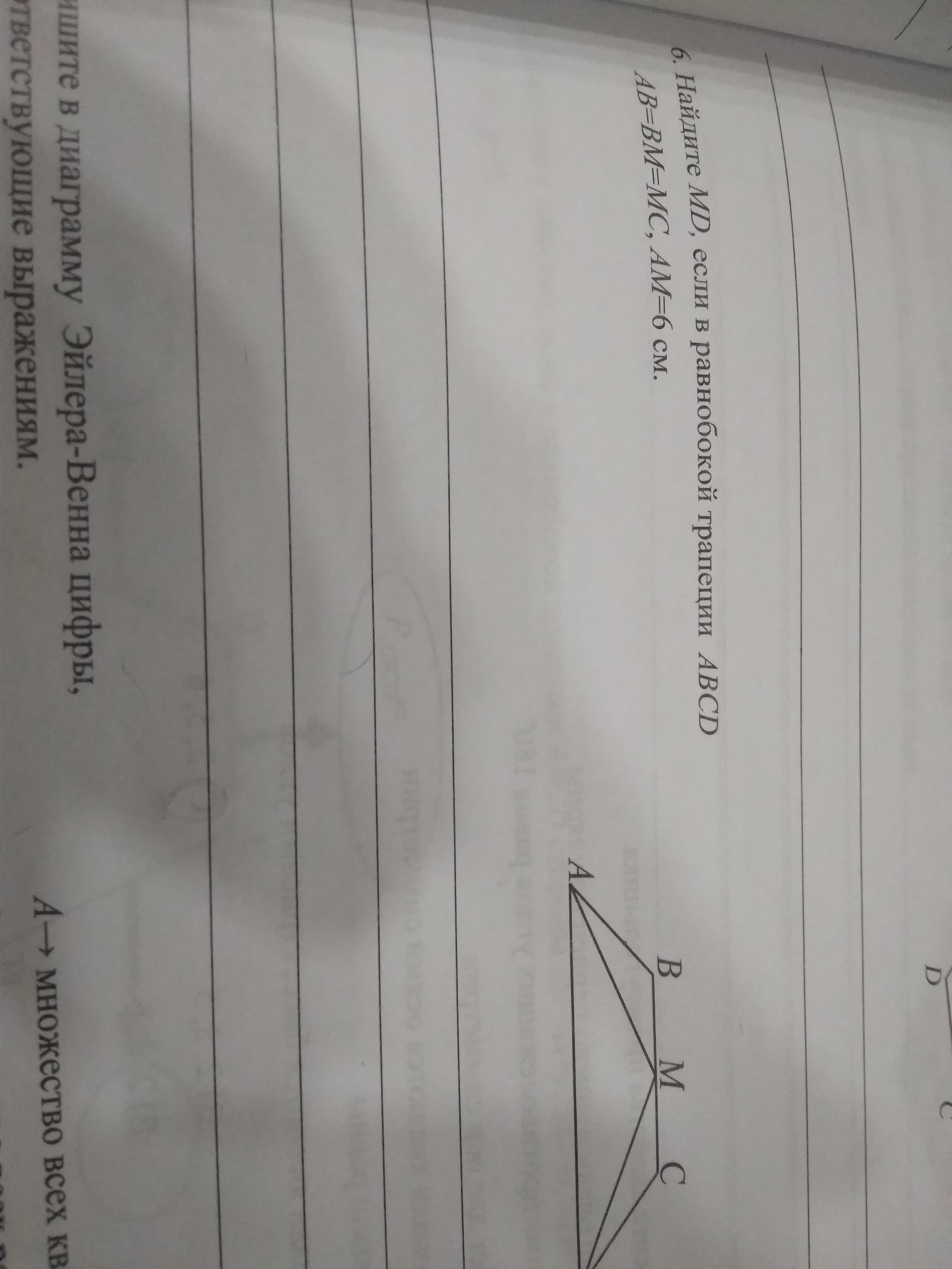 ΔABM=ΔDCM(по 2 сторонам и углу между ними), т.к. BM=MC(по условию), AB=CD(по условию(равнобокая трапеция)), ∠ABM=∠DCM(по условию)