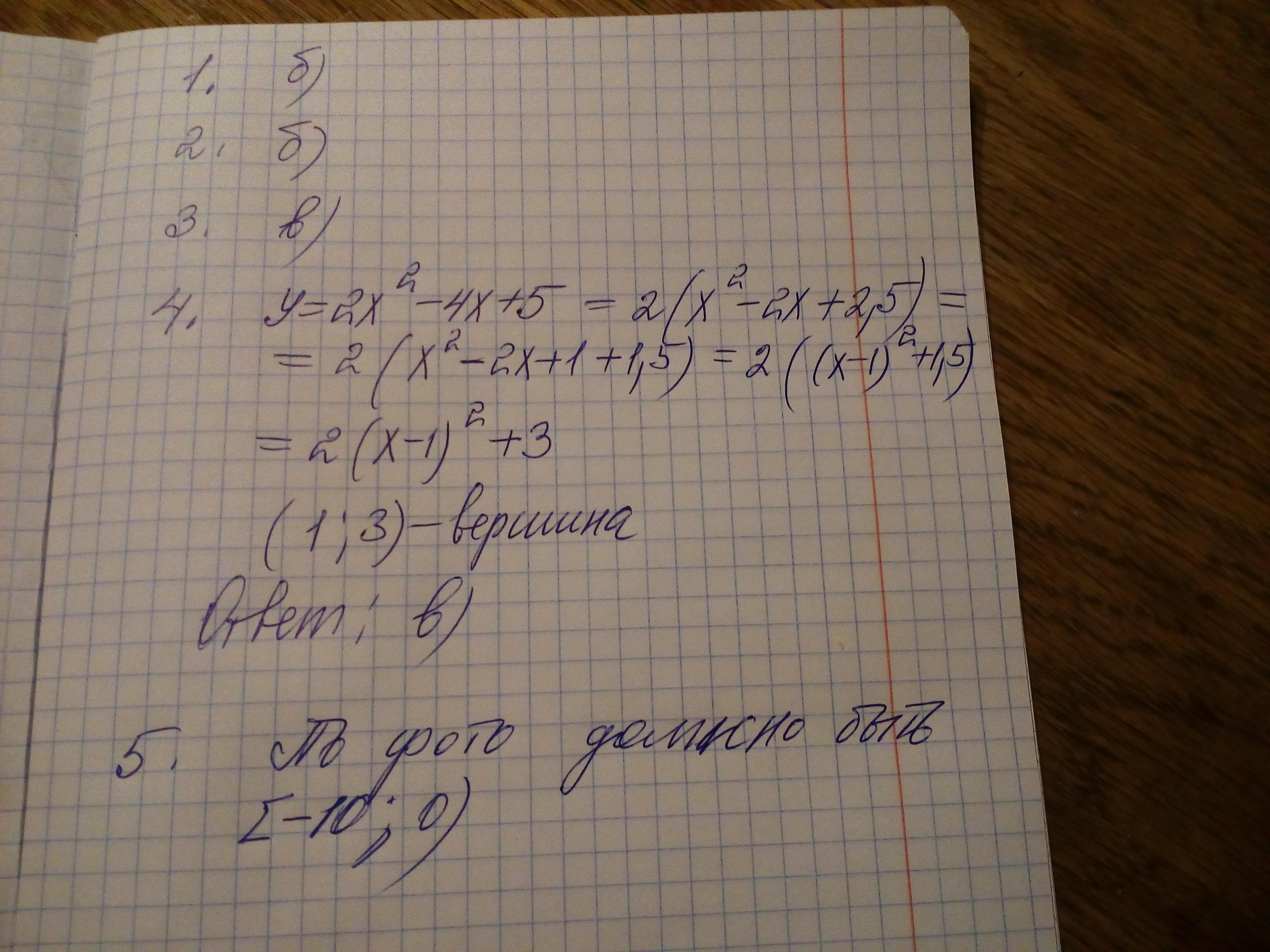 4. Вершиной параболы, заданной формулой y = 2x 2 – 4x + 5, является точка с координатами