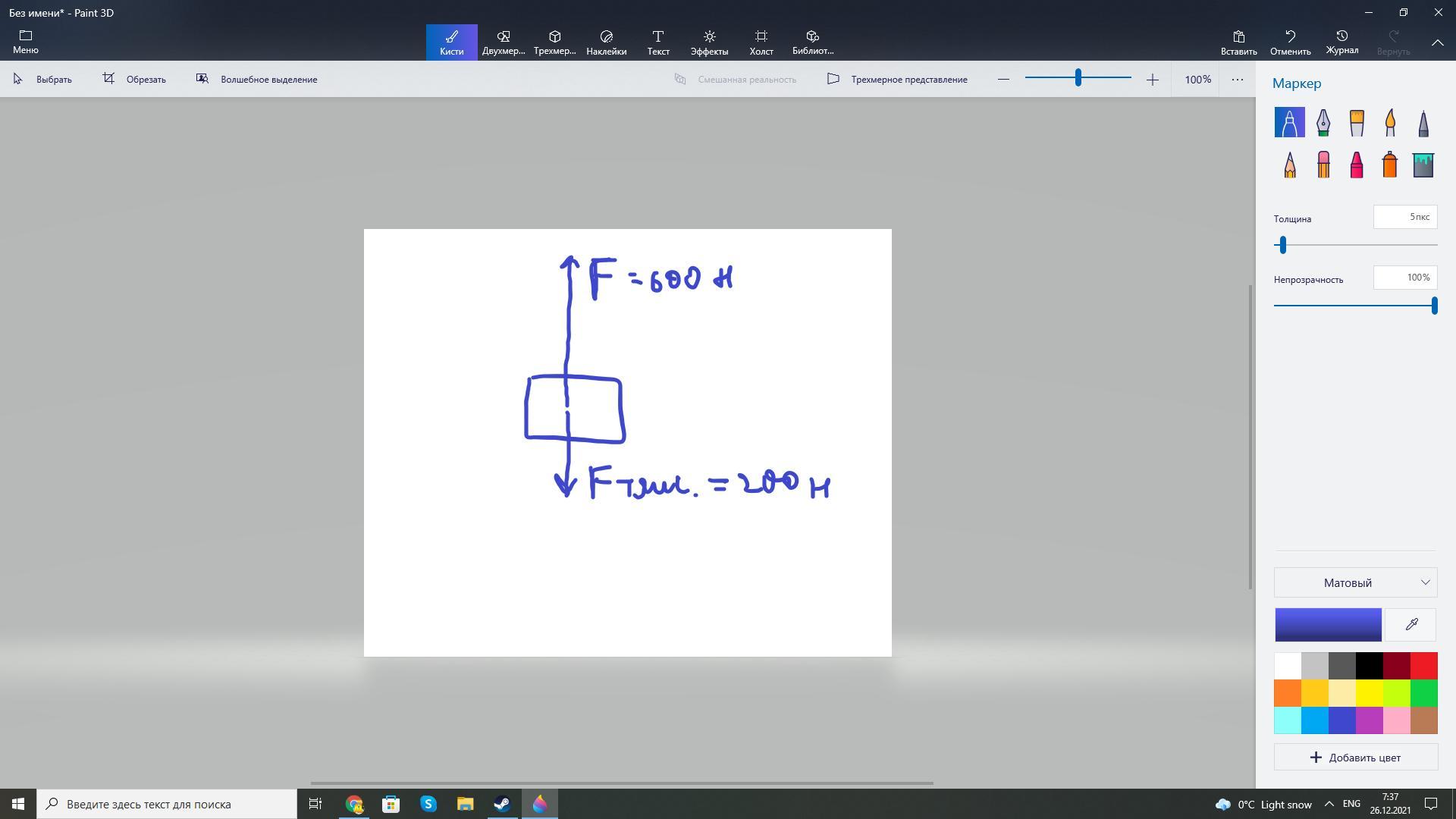 В задаче где рисунок равнодействующая равна Fo = F - Fтяж = 600-200 = 400 (Н).