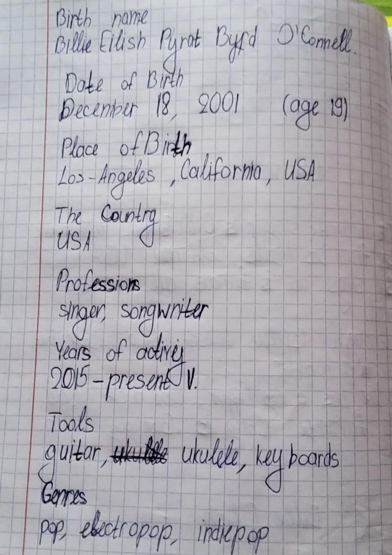 Просто собираешь с интернета про своего любимого певца пишешь как нибудь так