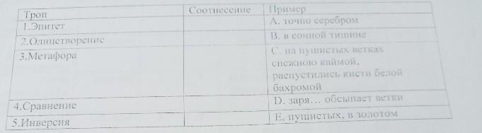 Соотнесите строки из стихотворения Есенина "береза" и изобразительные средства: