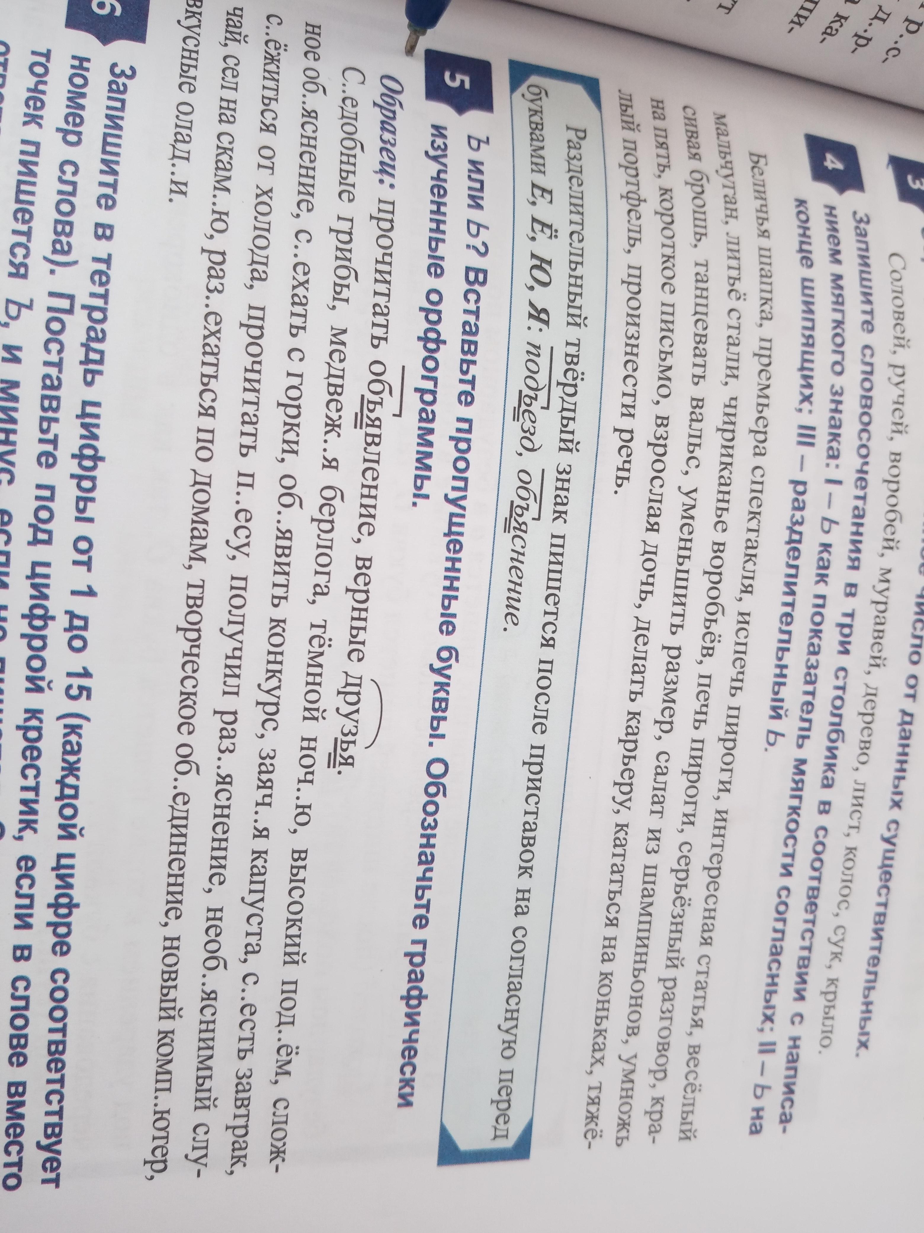 съедобные грибы, медвежья берлога, тёмной ночью, высокий подъем, сложное объяснение, съехать с горки, объявить конкурс, заячья капуста, съесть завтрак, съежится от холода, прочитать пьесу, получить разъяснения, необъяснимый случай, сел на скамью, разъехаться по домам. творческое объединение, новый компьютер, вкусные оладьи.