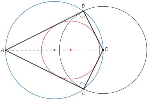 В четырехугольнике ABOC суммы противоположных сторон равны, следовательно в него можно вписать окружность.