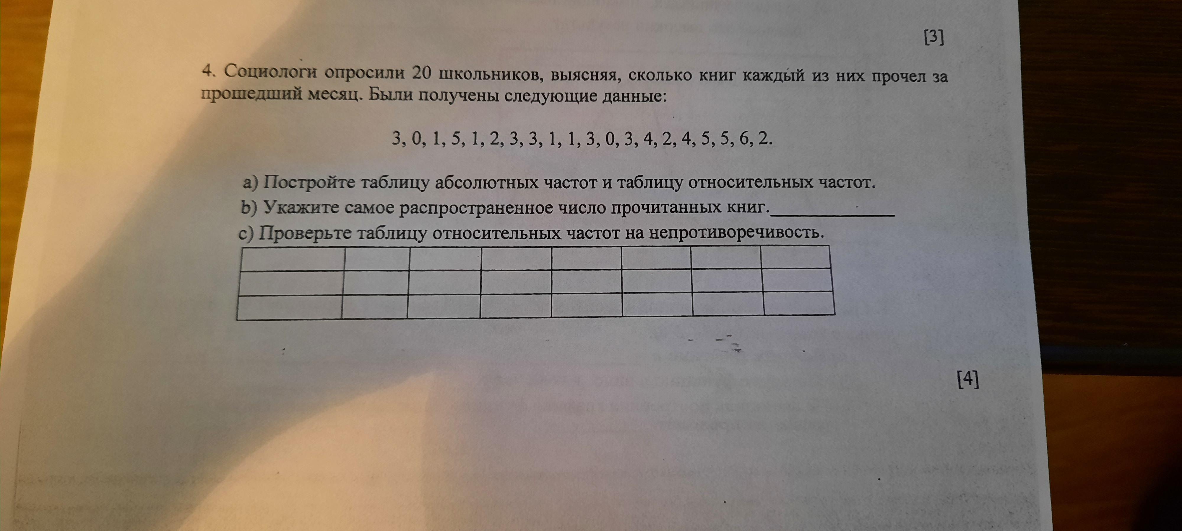 Помагите пожалуйста. Социология опросила 20 школьников, выясняя, сколько книг каждый из них прочел за прошедший месяц. Были получены следущие данные: