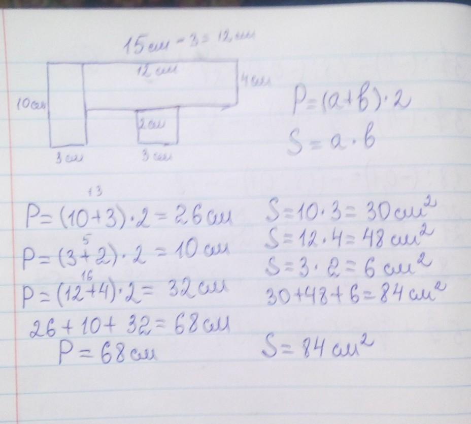 Р2=(10+3)×2=26см Р=32+26+10=68см