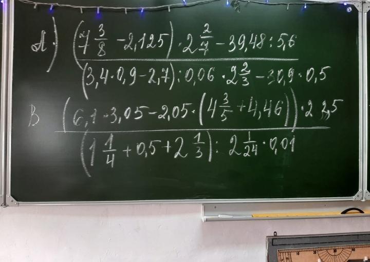 а) ((7 3/8 - 2,125)* 2 2/7- 39,48 : 5,6))/(3,4* 0,9 -2,7):0,06 * 2 2/3 - 30,9 * 0,5= =4,95 /0,55 = 9