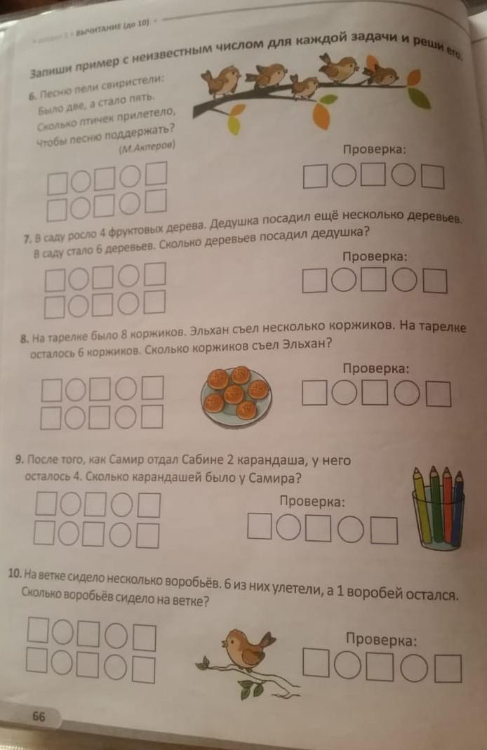 Там наверное сначало нужно написать уравнение,а потом действие.Например : 4+х=6; 6-4=2; Проверка: 2+4=6