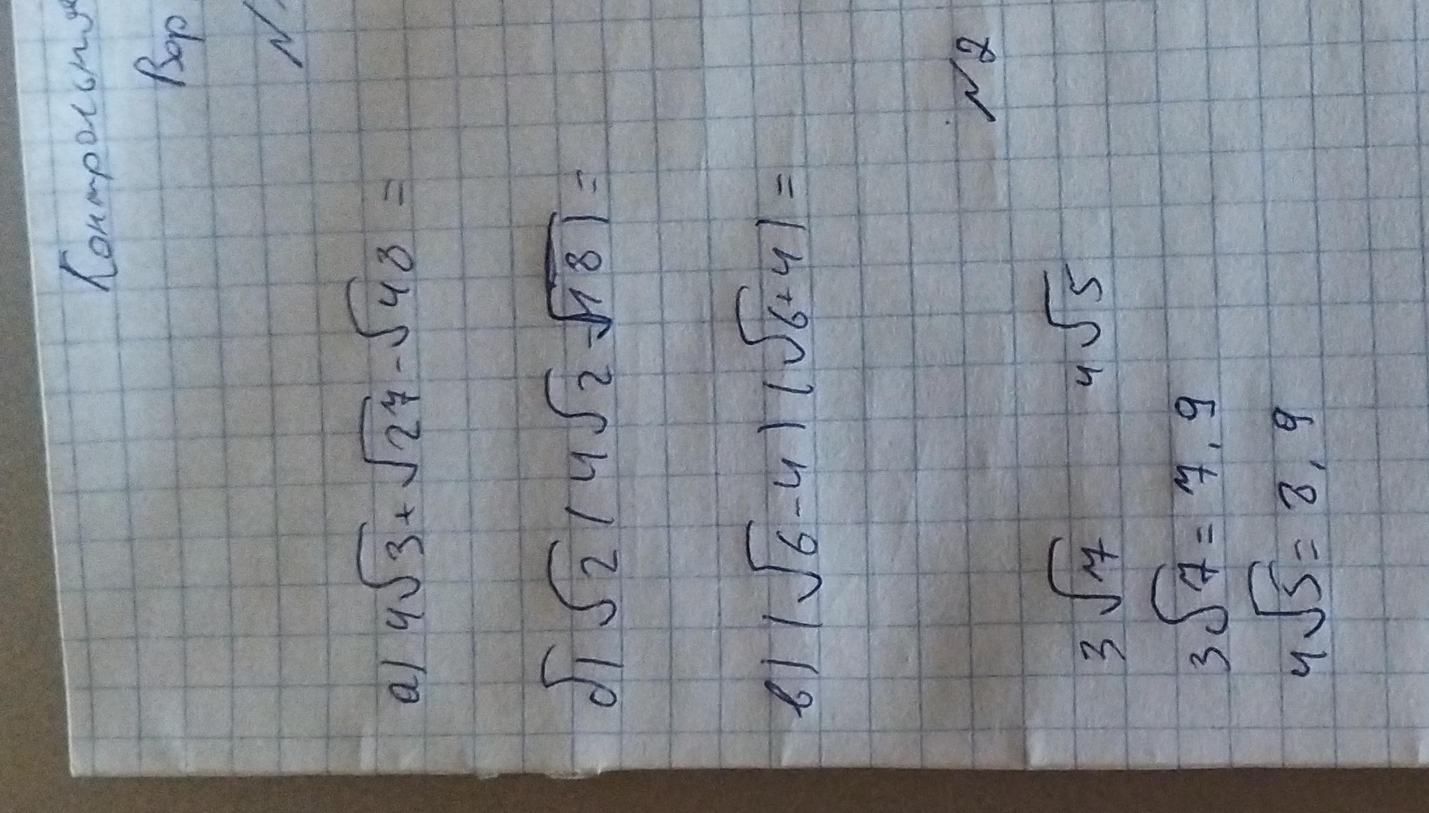 1) а) 4√3 + √27 - √48 = √3 · (4 + 3 - 4) = 3√3
