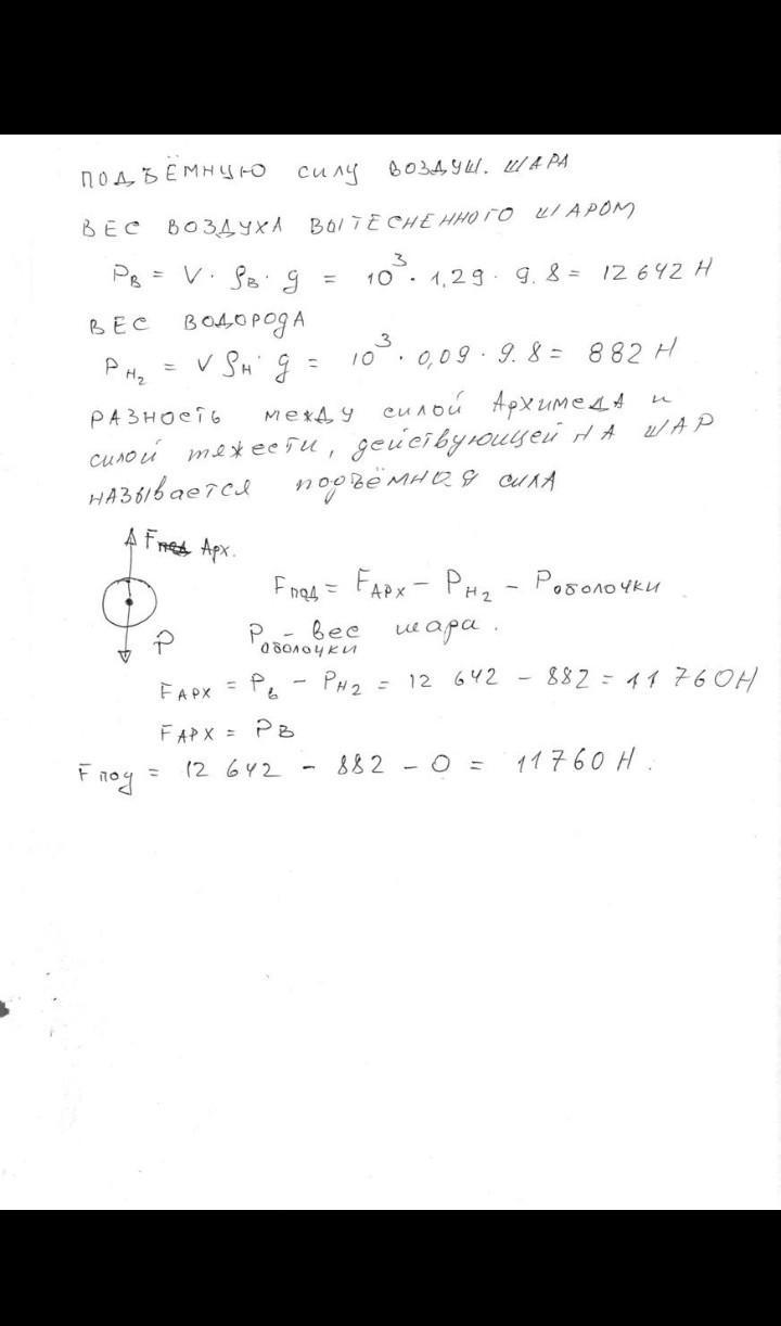 подъёмную силу воздушного шара объёмом 1000 м³.