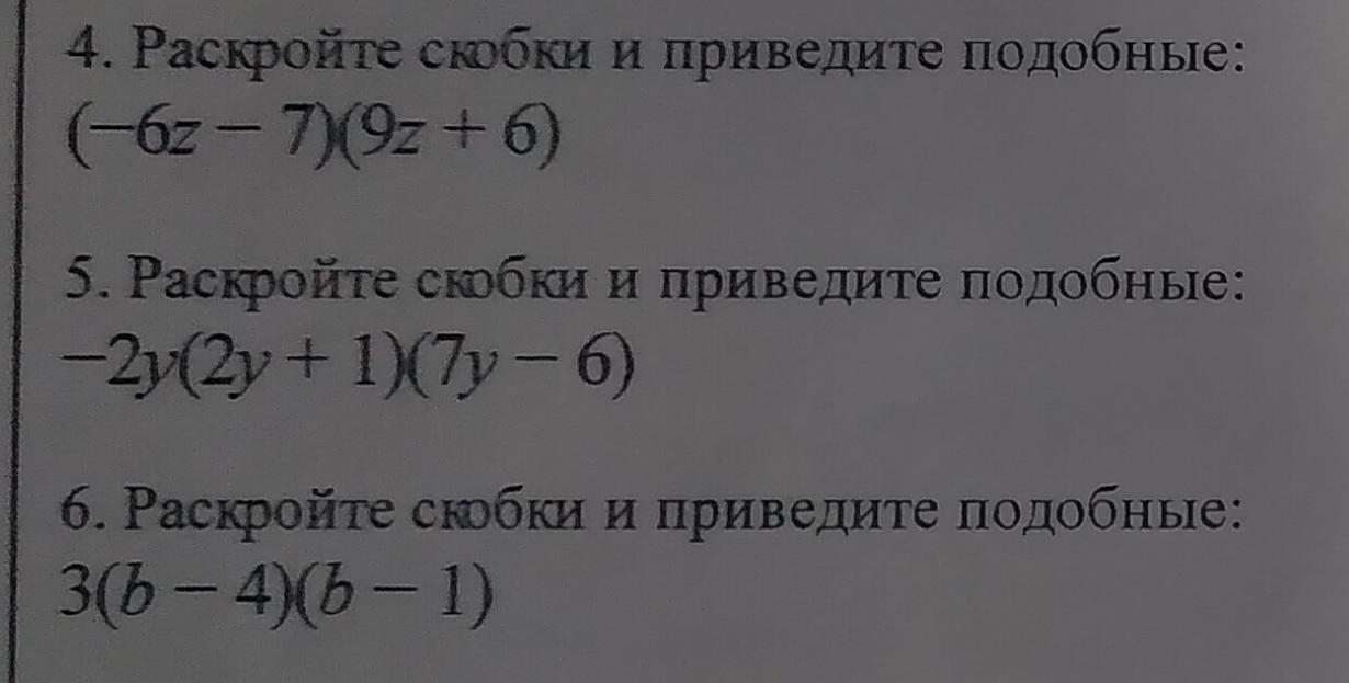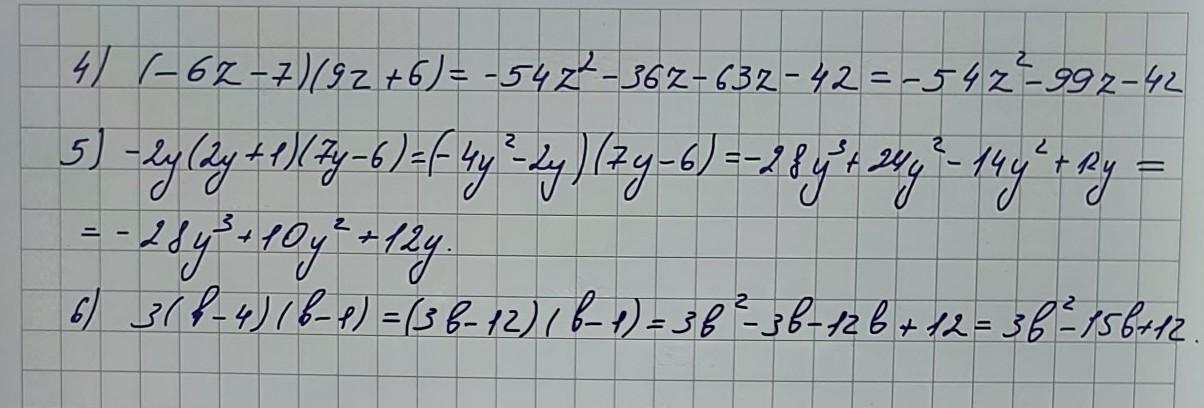 роскрывать скобки умножая поочередно каждый член первого многочлена на каждый член второго многочлена.