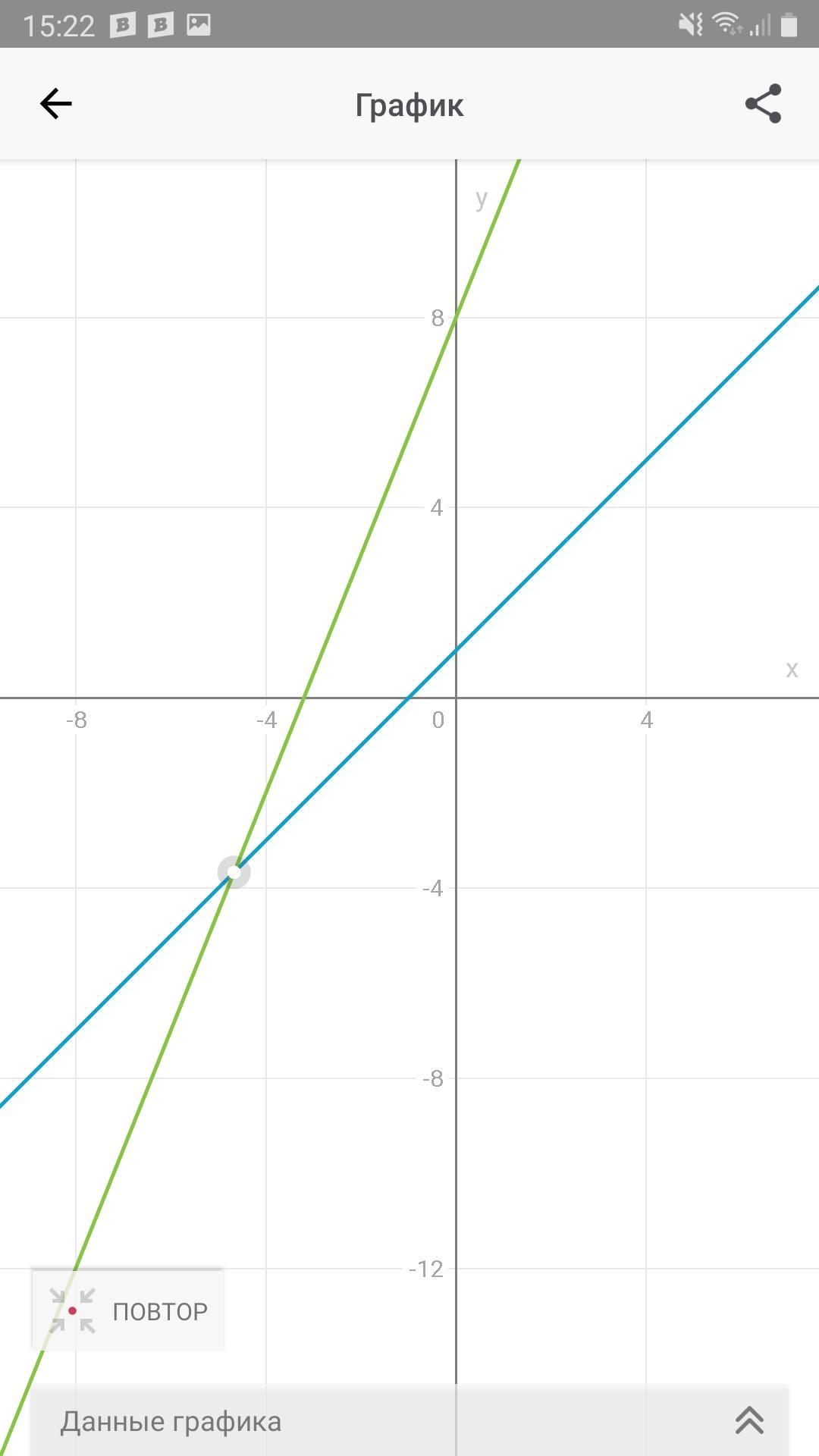 постройте в одной координатной плоскости графики функций у=х+1 и у=-2,5х+8 и укажите расположение графиков и их общую точку