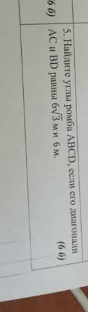 5. Найдите углы ромба АBCD , если его диагонали AC и BD равны 6√3 и 6м