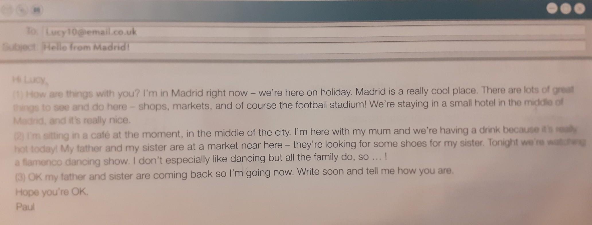 Hi Paul, I'm fine. I'm in (твой город) now. My holidays are not as fun as yours. My quarter ended well, the marks are almost all 5! But all my friends left for the holidays, and I have no one to walk with at all ... My mother and I recently went to the theater to see Gogol's play "The Inspector General". I liked the actors and the play itself. I hope that we will see each other soon and tell each other in more detail about the time spent.